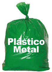 utiliza bolsas de este color para depositar elementos de vidrio, como: botellas de refrescos, frascos de conservas, frascos de perfume. Beneficios del reciclaje de estos materiales: el vidrio es uno de los materiales más fáciles de reciclar. Además, al fundirlo y darle nueva forma se ahorra un 93% de materiales y un 23% de energía.